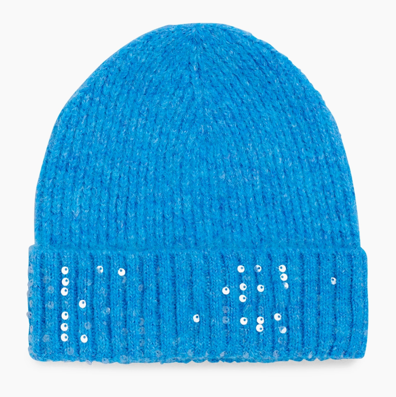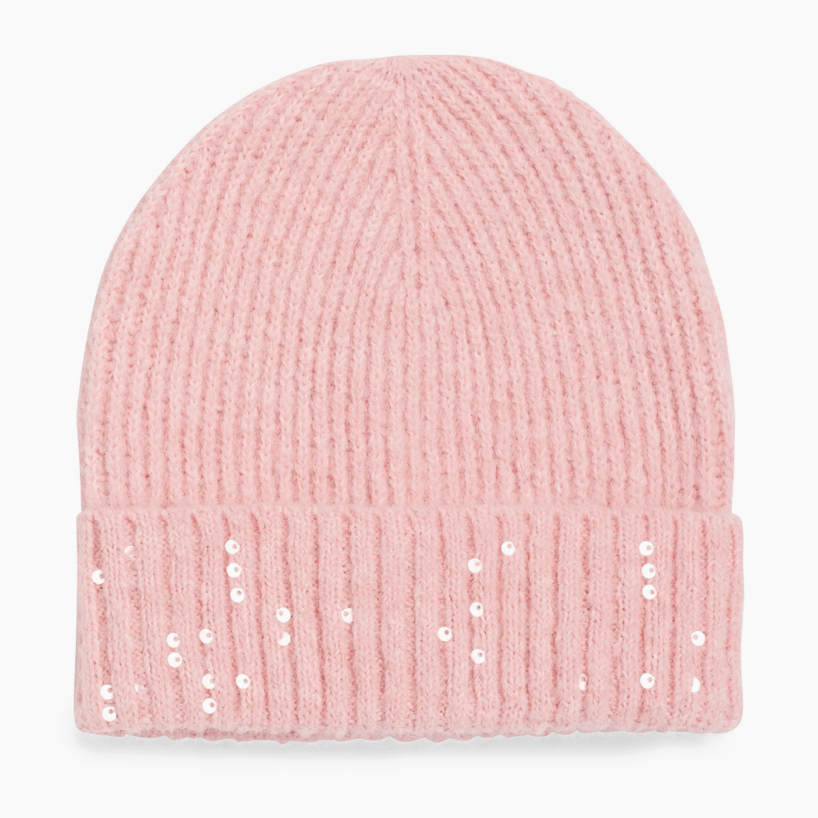 One Size, Made from acrylic, nylon, polyester, spandex, sequins, and wool, Meet the Arya Beanie — your cold-weather essential with a side of sparkle. Made from a cozy, ribbed knit with just the right amount of slouch, this beanie brings texture and shine to your winter wardrobe. The cuff is sprinkled with delicate sequins for that extra pop of personality, whether you're heading out for errands or cold weather fun!