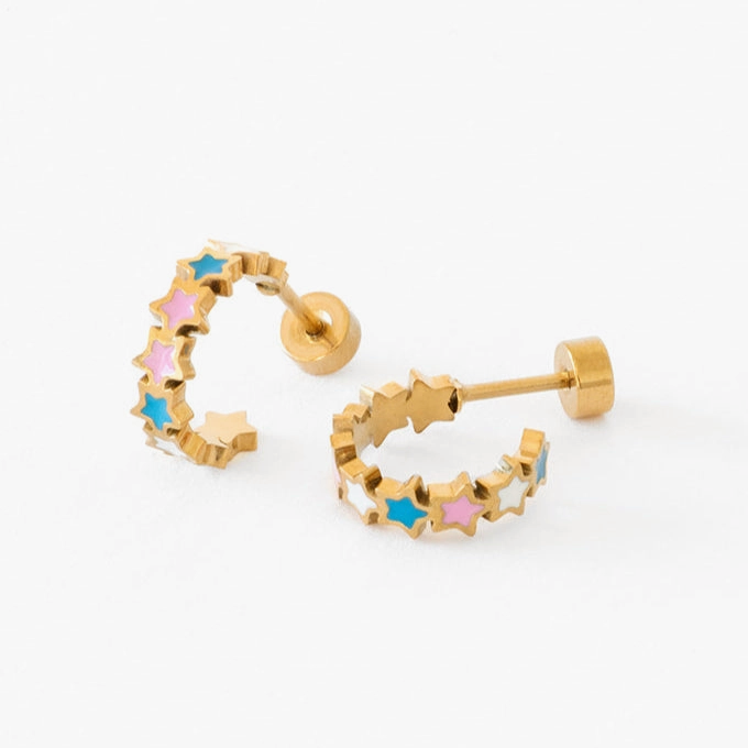 Treat yourself with our Star Flat-back Hoop! Multicolor enamel stars - pink, blue & white!