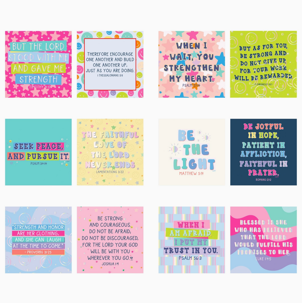 Immerse yourself in divine wisdom with our Bible Verse Card Set! Featuring 12 carefully selected verses with foil details on six 5x5" cards, this set is a beautiful source of inspiration and guidance. Add them to your Easter basket, gift them to a loved one, or display them proudly on your desktop or bedside table using the included acrylic card holder for a daily dose of spiritual upliftment.