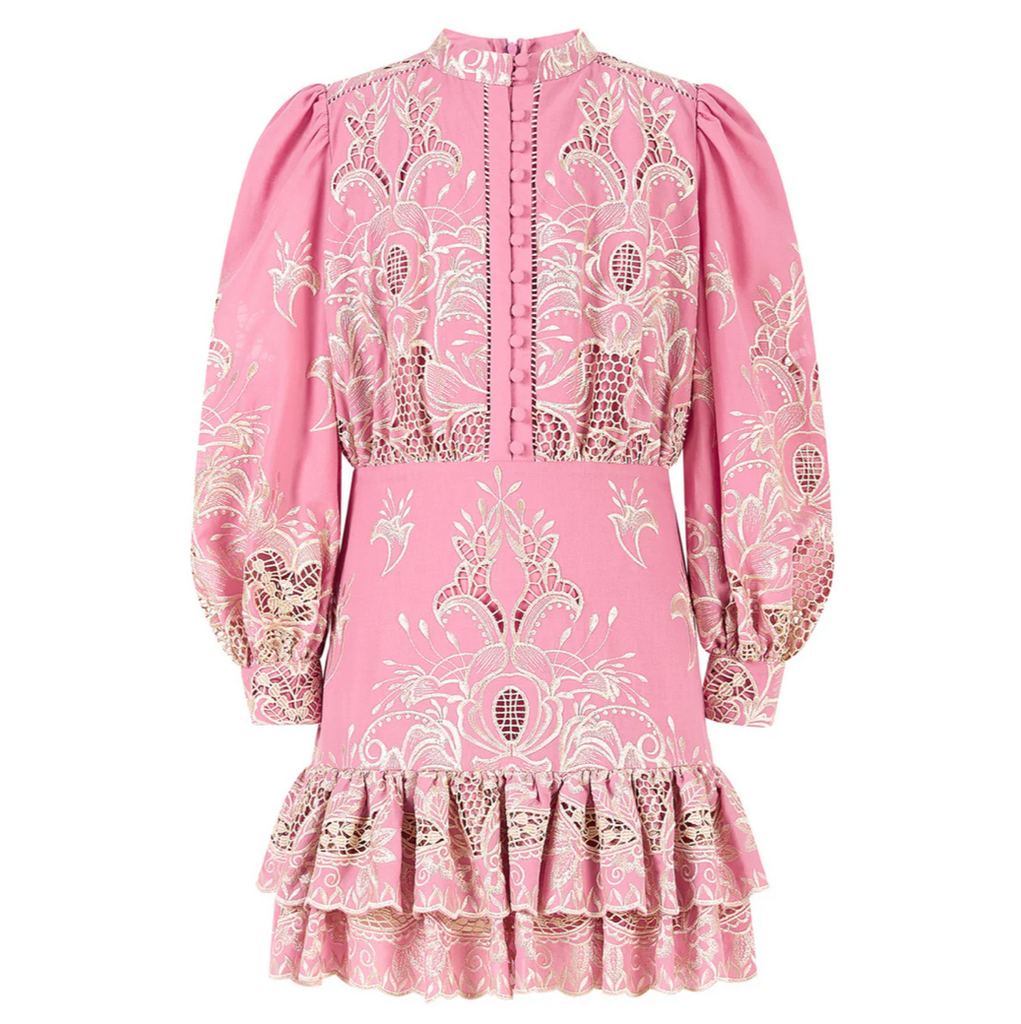 The Charm Embroidered Mini Dress is soft and romantic, with dreamy floral accents. A fairytale option for flower girl dresses or formal dresses for girls at weddings and christenings.