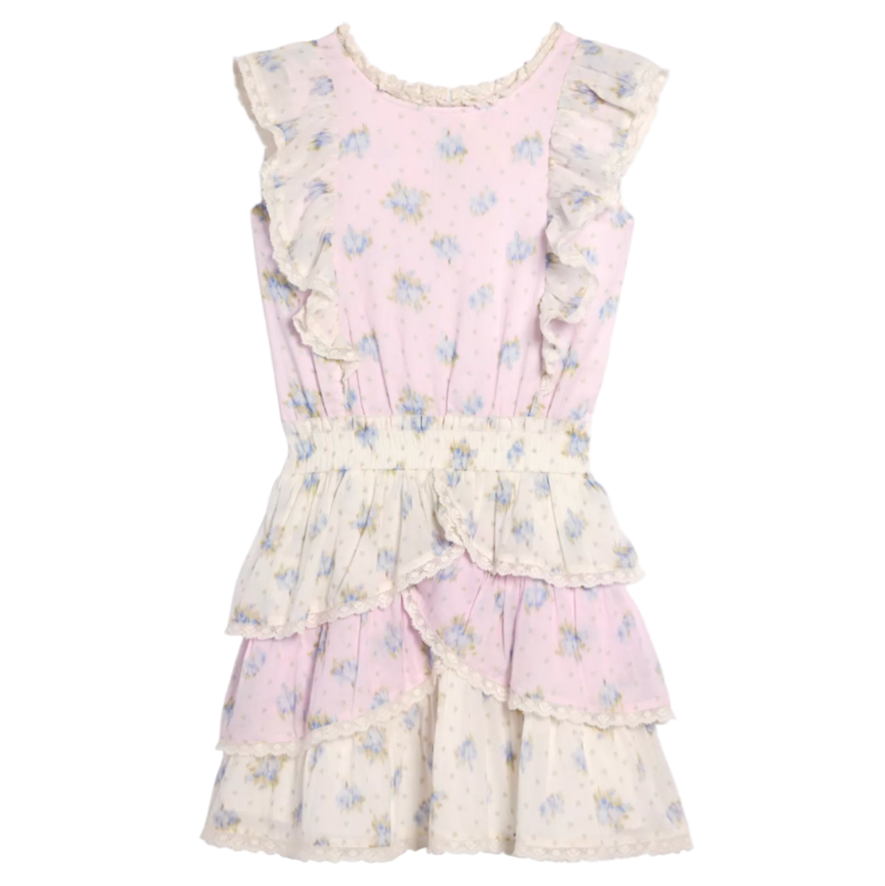 Twirl into LoveShackFancy's Decker Dress in Lilac Vanilla! This charming piece features a round neckline and sleeveless cut, adorned with delicate lace trim and an allover floral print. The smocked waist creates a flattering silhouette, while the tiered skirt adds movement and whimsy. Back button closures and ruffled trim at the bodice complete this sweet, feminine look!