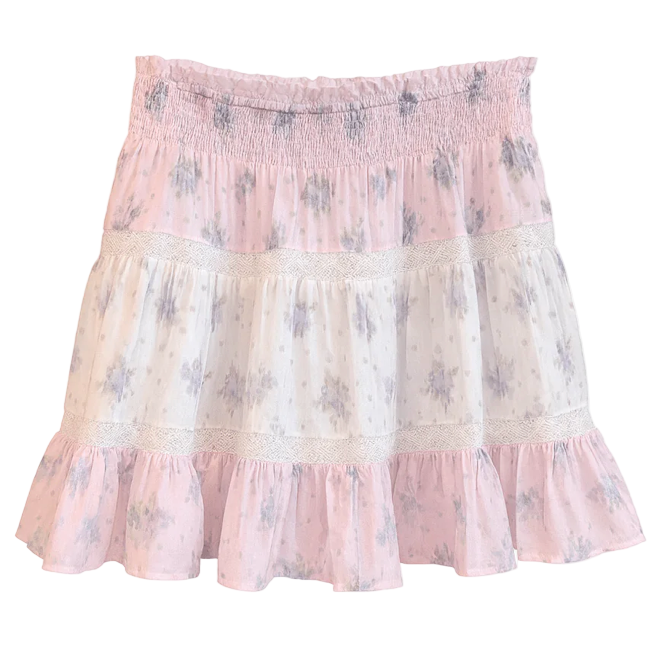This airy mini features LoveShackFancy's signature prints with an elasticated waistband, three tiers, and tiny ruffle details.
