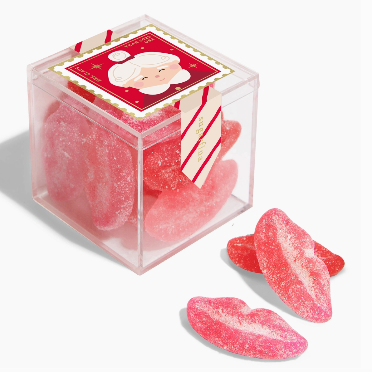 Pucker up! These sweet and sour gummy lips in mouthwatering flavors of strawberry, cherry and watermelon are perfect for sending holiday kisses.