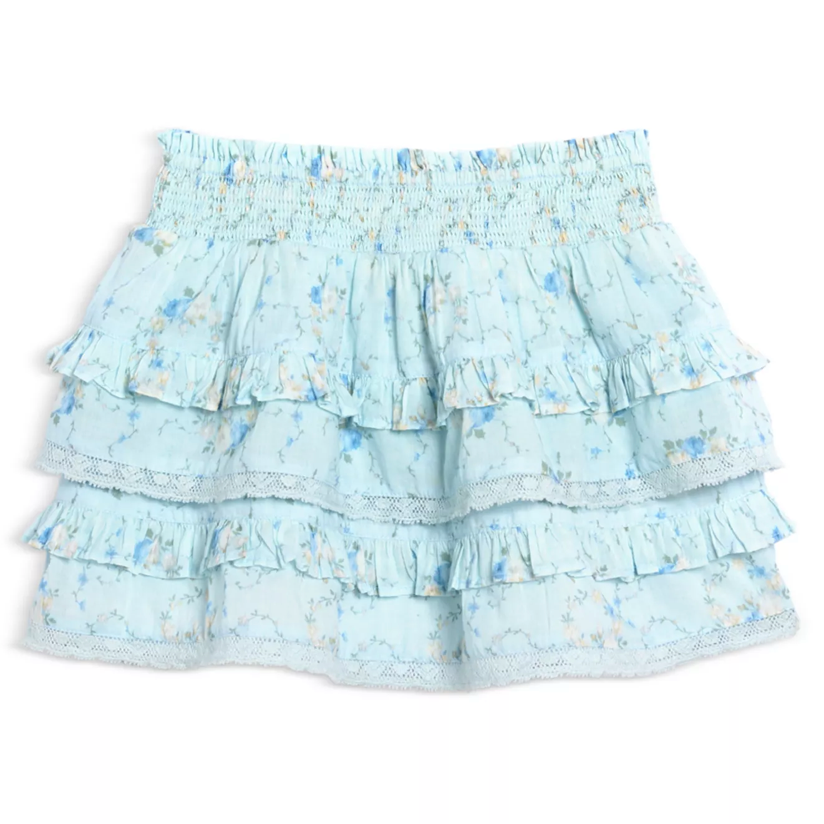 Twirl into springtime style with LoveShackFancy's Billie Skirt in Snowdrop Blue! This charming pull-on skirt features a smocked waistband for a comfy, flattering fit that requires zero fussing. Delicate tiered layers adorned with lace or ruffled trim create movement and dimension, while an allover floral print brings cheerful color to your wardrobe. Crafted from soft cotton and true to size, it's the perfect piece for effortless, playful days. Hand wash to keep it looking fresh.
