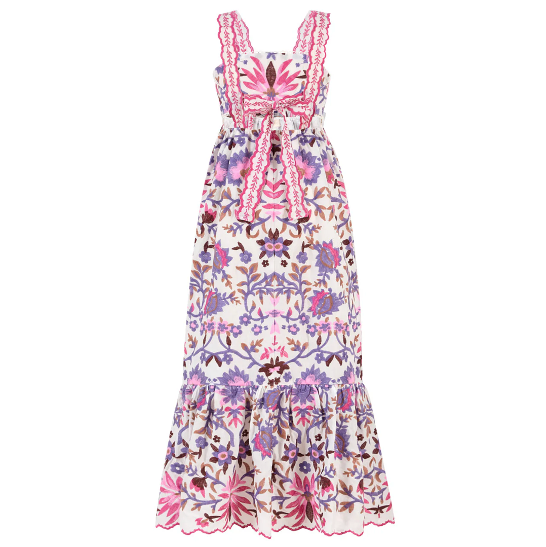 Step into enchantment with the Taylee Embroidered Maxi Dress. Featuring all-over floral embroidery and a sweeping silhouette, it’s an elegant option for weddings, communions, and graduations.