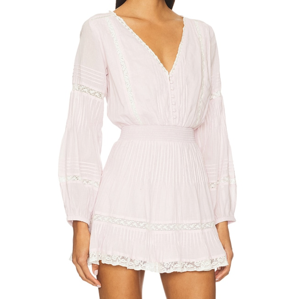 Elevate your everyday style with the Winfrey Dress in Orchid Ice—a playful blend of elegance and ease. This charming pullover features a flattering V-neck and partial front buttons for effortless dressing. Long sleeves and delicate allover lace insets add romantic flair, while strategic smocking at the waist creates a polished silhouette. The tiered skirt brings movement and dimension, perfect for twirling through your day. Partially lined for comfort and coverage, this dress transitions seamlessly from brunch to evening plans.