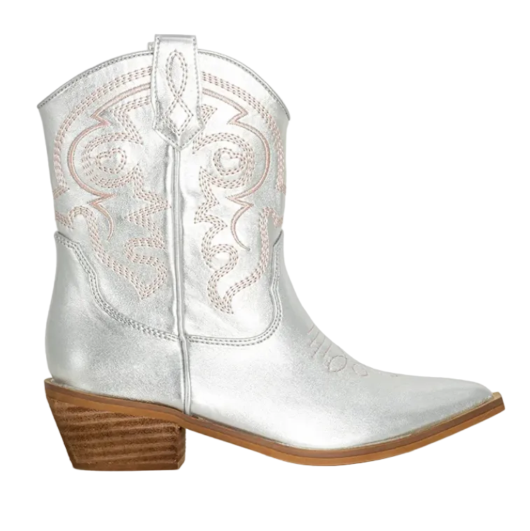 Little boots, big sparkle. The ZITA MINI in silver is made to stand out with its metallic shine and twinkling embroidery. It’s the perfect mix of western glam and everyday play, whether she’s heading to a birthday party or just wants to shine brighter than usual.